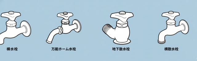 屋外で使われる一般的な蛇口は、主に以下の3+1つのタイプに分けられます。